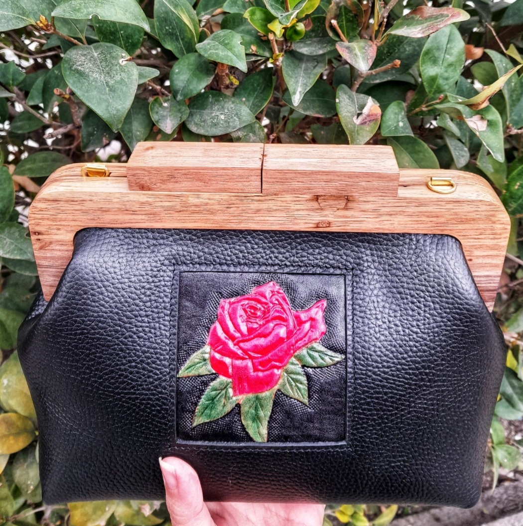 کیف دهانه چوبی چرم طبیعی گاوی