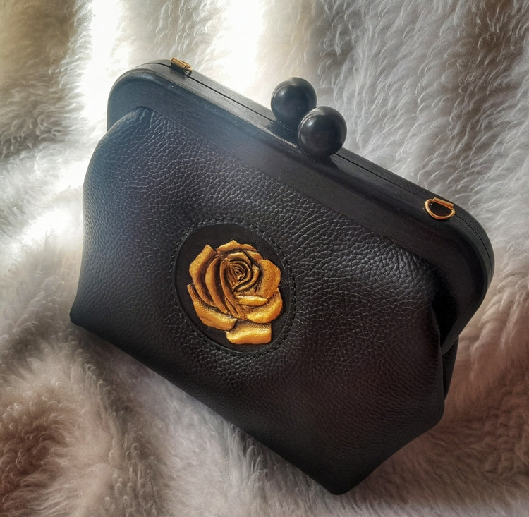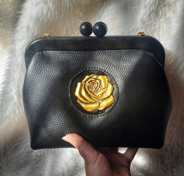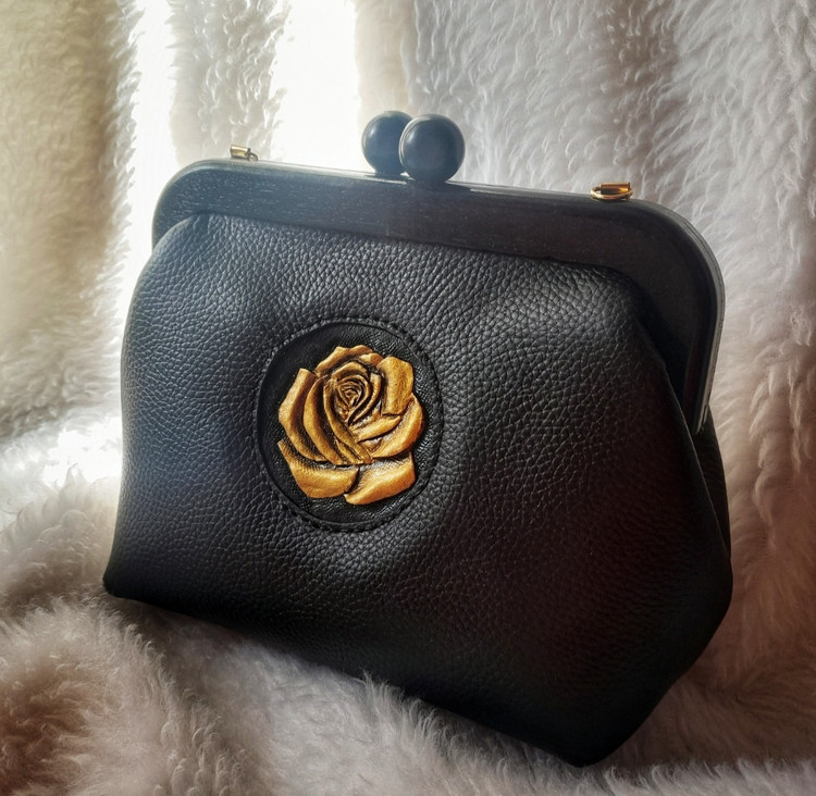 گل رز حکاکی شده با دست روی چرم و دسترنگ
