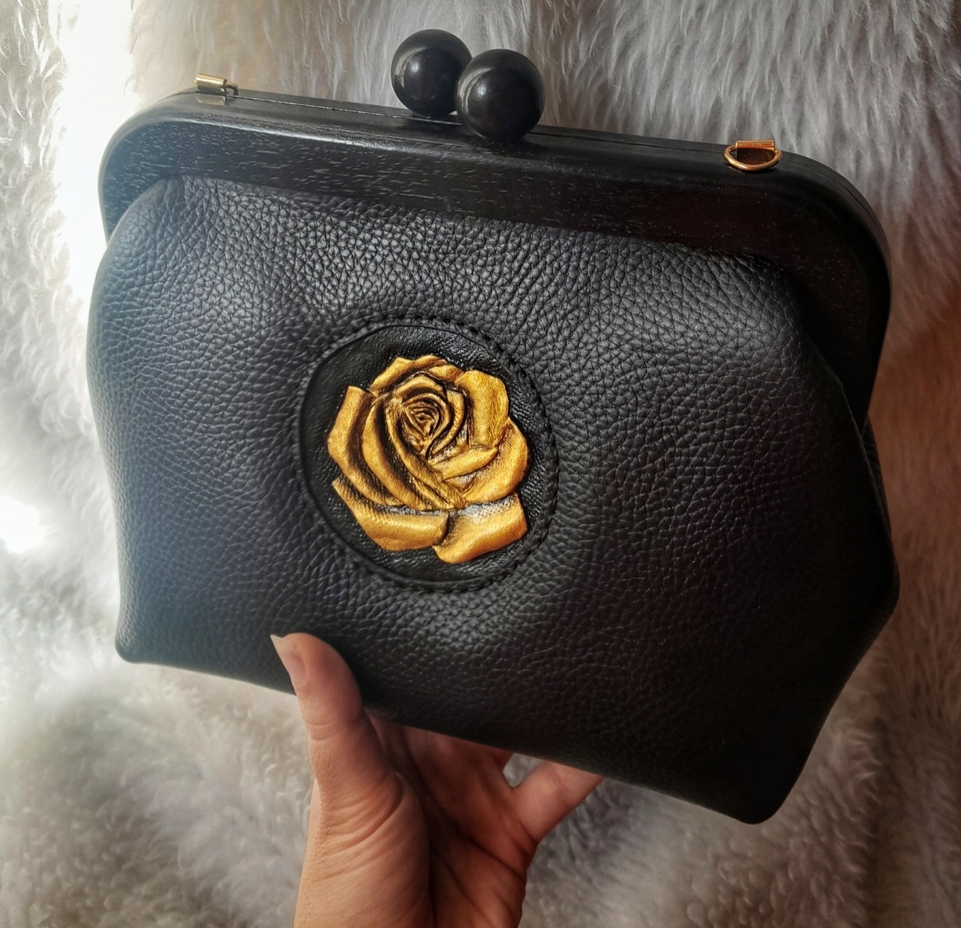 رنگ: مشکی و گل وسط کار طلایی