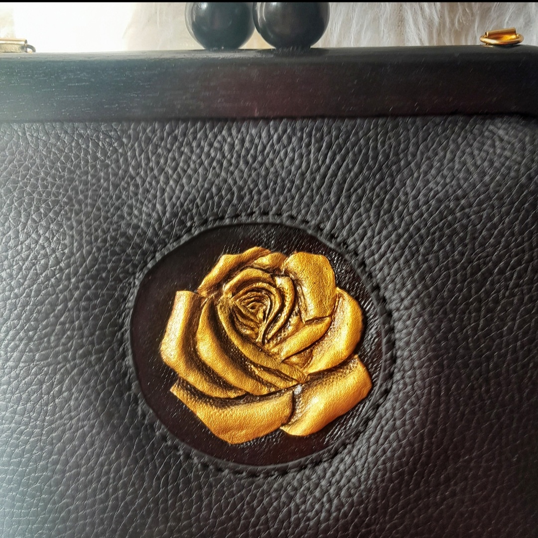 گل رز حکاکی شده با دست روی چرم و دسترنگ
